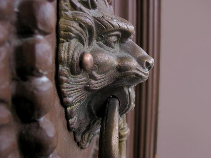 Keywords: Doorknocker.jpg Aldaba con forma de león a door knocker in the palace in Przytok Poland 2006-01-15 own assumed Mohylek Door knockers in Poland Palace in Przytok