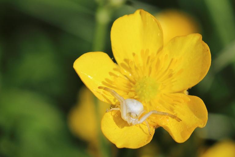 Keywords: dorsata spider white buttercup yellow macro close arachnids nature