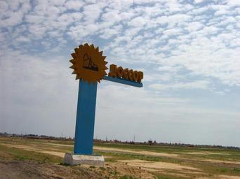 Keywords: Dossor.JPG en Road sign at the entrance to Dossor ru Знак на въезде в Доссо own Ds02006 talk 05 40 19 June 2008 UTC 2008-05-27 Atyrau Province Cities in Kazakhstan Signs in Kazakhstan Orange signs