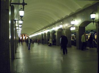 Keywords: Dostoevskaya metrostaion.jpg Цент альный зал станции мет о Достоевская в Санкт-Пете бу ге own 2007-09-07 Анд ей Dostoevskaya metrostation Electric lighting