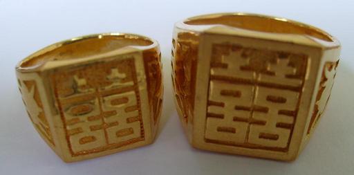 Keywords: Double Joy.jpg en golden rings with the Chinese character 囍 double happyness de Goldringe mit dem chin Zeichen 囍 für Doppelglück own work own photo of own ring by own camera Sarang 2009 07 10 from South Korea Shuang xi