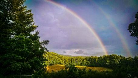 MAKE A MEME View Large Image double rainbow sky nature rain colorful weather outdoor scenic light refraction physics landscape view bright meteorology spectrum forest sunlight phenomenon two
