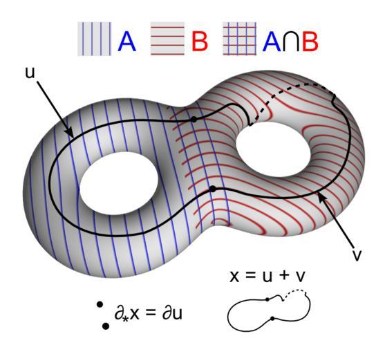 | Keywords: DoubleTorusCover.png en Illustration of the boundary map ˆ‚<sub> </sub> for the Mayer-Vietoris sequence on the double-torus where the 1-cycle x u + v is the sum of two 1-chains whose boundary lies in the intersection of A and B Own work using POV-Ray and Inkscape Based on a drawing by User GeometryGirl public domain RobHar 2008-12-18 Data file The double-torus was produced using POV-Ray v3 6 using the following code include colors inc include shapes inc include textures inc include functions inc camera location <-0 5 3 -2> look_at <0 0 0> //Striped textures declare bluestripes texture pigment gradient y colour_map 0 rgb <0 0 1>0 15 rgb <1 1 1> scale 0 1 finish ambient 0 3 rotate <0 0 90> declare redstripes texture pigment spiral1 1 colour_map 0 rgb <0 8 0 0>0 25 rgb <1 1 1> scale 0 1 finish ambient 0 3 declare blueredstripes texture pigment spiral1 1 colour_map 0 rgb <0 8 0 0>0 25 rgb <1 1 1> scale 0 1 finish ambient 0 3 texture pigment gradient y colour_map 0 rgb <0 0 0 8>0 15 rgb <1 1 1> filter 1 scale 0 1 finish ambient 0 3 rotate <0 0 90> declare Blob_threshold 0 0001; declare double_torus isosurface function //Smoothed sum of two level surfaces 1+Blob_threshold -pow Blob_threshold f_torus x+0 6 y z 0 5 0 2 -pow Blob_threshold f_torus x-0 6 y z 0 5 0 2 contained_by box <-1 5 -0 3 -0 9> <1 5 0 3 0 9> //Set containing box default is too small max_gradient 15 //Red part object double_torus clipped_by plane -x -0 15 texture redstripes //Blue part object double_torus clipped_by plane x -0 15 texture bluestripes //Intersection part object double_torus clipped_by plane x 0 15 clipped_by plane -x 0 15 texture blueredstripes //Empty background plane <0 1 0> -2 no_image light_source <0 1 5 -2> color White Algebraic topology Blobs Created_with_Persistence_of_Vision Isosurfaces |
