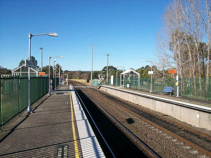 Keywords: 34 11S 150 43E Douglas Park railway station is located on the Main South line in New South Wales, Australia. It serves the town of Douglas Park. Opened 6 September 1869. attribution: Abesty