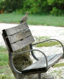 Keywords: dove bird bench seat park tranquility gray