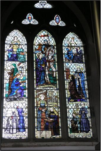 | Keywords: Dove.png en The three-light window in All Saints' High Wycombe is known as the Dove Window and remembers Frances Dove 1847-1942 It was designed by Caroline Townshend and Joan Howson Frances Dove was one of the first students to enrol at Girton College and became founder and first headmistress of Wycombe Abbey School for girls in 1896 She was an active advocate of women ™s rights and when the 1907 Qualification of Women County and Borough Councils Act was passed which gave women the right to sit on local councils even though they could not vote she was one of the first women in the country to be elected In 1908 she was invited by the Council to become the Mayor and although Miss Dove had been elected by the Council this was overturned at the public mayor making ceremony when a male candidate stepped forward This mayor making ceremony would take place in the market square an ancient weighing-in ceremony at which the mayor elect is acclaimed by the people Never before or since was another candidate brought in at that ceremony and elected by acclamation of the crowd a crowd on that occasion no doubt packed with anti-feminists Although Dove was not elected the Bucks Free Press noted that she was the only person to come out of the meeting with dignity It seems she chose to wear a scholar ™s cap with her councillor ™s robes and High Wycombe women councillors still wear scholar ™s caps with their robes to this day She retired as headmistress in 1910 was appointed a JP supported the Suffragettes and in 1928 was made a dame She presented the window to the parish church to pay tribute to the achievement of women through the ages in the face of male domination The window was dedicated on Ascension Day in 1933 In the left panel Townshend and Howson depicted Charlotte Brontë Emily Davies the first principal of Girton St Bridget St Winifred Elizabeth Fry the prison reformer and Florence Nightingale They also listed the names of Maud Royden and Dame Millicent Fawcett both suffragettes Agnata Ramsay the first woman to achieve a classics tripos at Cambridge Mary Kingsley Hannah More anti-slavery writer and friend of Wilberforce and Edith Cavell In the centre panels are depictions of St Margaret the Scottish Queen Margaret Roper daughter to Sir Thomas More Margaret Beaufort mother of Henry VII and benefactress of Oxford and Cambridge universities and Ann Clough the first principal of Newnham College and the names Josephine Butler the social reformer Octavia Hill co-founder of the National Trust Jenny Lind opera singer Sophia Jex-Blake a pioneer of medical education for women Elizabeth Garret-Anderson first woman member of the British Medical Association and Agnes Jones the nurse praised by Florence Nightingale In the right hand panel were depicted Grace Darling Queen Victoria Christina Rosetti and St Hilda together with the names St Frideswide Mary Slessor the Scottish missionary Alice Marval who died caring for plague victims in India Amy Johnson and Elsie Inglis a suffragette who took women ™s medical units to serve on the Western Front in the Great War 2012-05-02 own Weglinde cc-zero Uploaded with UploadWizard Stained glass windows in Buckinghamshire All Saints Parish Church High Wycombe Sophia Jex-Blake Emily Davies |