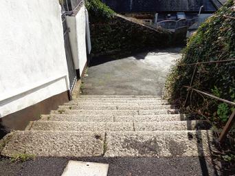 Keywords: downstairs stone steps outdoors down