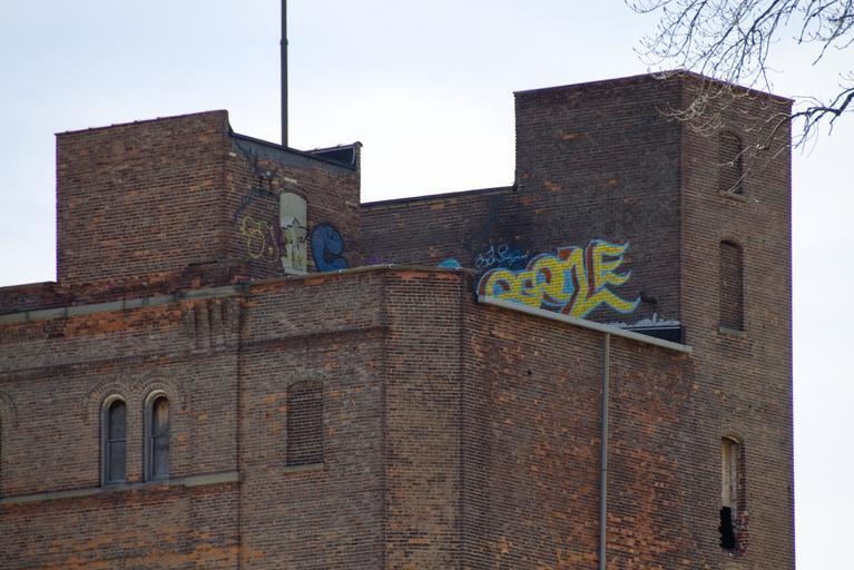 Keywords: downtown city graffiti cityscape architecture urban skyline building brick