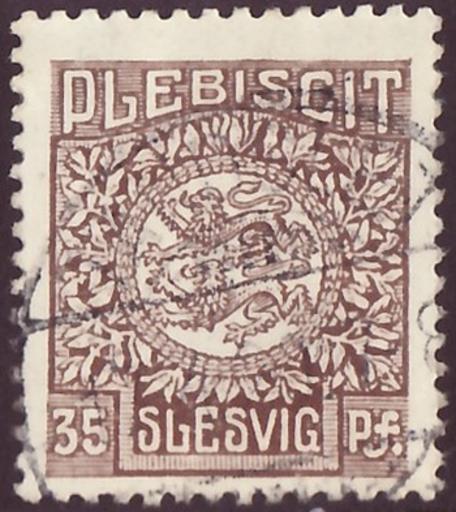 | Keywords: DRAbstG 1920 Schleswig MiNr08 B002.jpg Stamp of the German Empire - plebiscite area Schleswig ; definitive stamp of 1920<br /> Stamp Michel No 8; AFA No 22 DR-SL <br /> Color brown shades <br /> Watermark Schleswig No 1 standing crosses <br /> Nominal value 35 Pf Pfennig <br /> Postage validity - 1920-01-25 1920-05-27 Zone 1 <br /> - 1920-01-25 1920-06-23 Zone 2 <br /> scan of original other date 1920-01-25 first issue day of the stamp Commission Internationale de Surveillance du Plébiscite Slesvig PD-Germany-§134-KUG PD-Denmark PD-1923 inscription with white letters other date 1920-01-25 Commission Internationale de Surveillance du Plébiscite Slesvig A Carszens Druckerei H H Thiele letterpress printing 1 801 100 comb perforation K 14 14½ Deutsche Abstimmungsgebiete Schleswig Nr 8 1920 stamps of Northern Schleswig 08_2_1 Brown stamps |