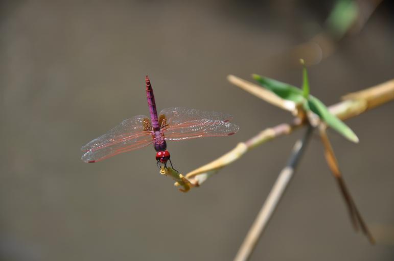 Keywords: dragonfly red bug nature insect animal fly wing branch biology outdoor natural resting environment