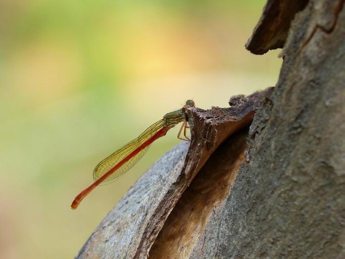 Keywords: dragonfly red dragonfly beauty bark trunk insect