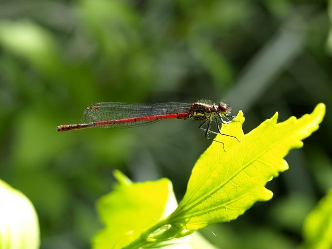 Keywords: dragonfly red insect flight insect wing nature adonis dragonfly adonis maiden small dragonfly filigree persevere head garden eyes shiny close wait transparent wing skeleton sit summer leaf