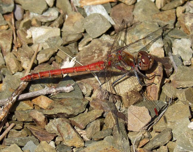 Keywords: dragonfly red insect stones red dragonfly fly detail