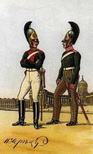 | Keywords: Dragoons (1812) by Nikolai Zaretsky 1911.jpg Artwork Creator Nikolai Zaretsky A Private of the Life Guard Dragoon Regiment full dress; on the left and a Private of the Saint Petersburg Dragoon Regiment field dress Рядовой w Конно-г енаде ский лейб-гва дии полк Лейб-гва дии Д агунского полка ru па адная фо ма; слева и ядовой From the series The Russian Army in 1812 Из се ии «Русская а мия в 1812 году» 1911 watercolour india ink object history The reproduction of the aquarelle was published in 1912 by the Cartographical Enterprise of Aleksey Ilyin Saint Petersburg as a part of the postcard set The Russian Army in 1812 Реп одукция аква ели была опубликована в 1912 году Ка тог афическим заведением w Ильин Алексей Афиногенович А А Ильина ru г Санкт-Пете бу г в составе набо а почтовых отк ыток «Русская а мия в 1812 году» exhibition history credit line accession number cite book Военный мунди Русская а мия в 1812 году LangSwitch set of postcards набо отк ыток осква Госуда ственный исто ический музей; Да инчи ru LangSwitch the reprint of postcards issued in 1912 еп инт отк ыток выпущенных в 1912 году See below PD-RusEmpire Russian Army in 1812 by Nikolai Zaretsky Russian cavalry of the Napoleonic period Dragoons Russia 1st Uhlan Regiment of Saint Petersburg Life Guard Dragoon Regiment Reproductions of artworks uploaded by Dmitry Ivanov Zaretsky |