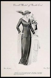 Keywords: Drecoll Model of Needlecord. Paris Spring Season 1913.jpg en Fashion Design by Christoph Drecoll 1851 “1939 Drecoll Model of Navy Needlecord cloth Skirt draped Coat trimmed with fine silk braid piped with King ™s blue silk Vest and collar of white faille Buttons covered with material Cocktail dress by couturier Baron Christoph von Drecoll Published by Haas brothers 2014-05-06 10 22 20 http //world4 eu/tag/drecoll/ Christop Drecoll 1851-1939 PD-Art Uploaded with UploadWizard Christoph Drecoll Fashion in 1913 History of fashion in Paris