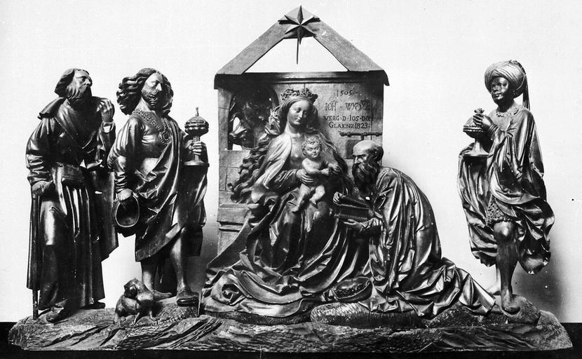 | Keywords: Dreikönigsaltar-Figuren Freiburg Wydyz.JPG Holzfiguren des Dreikönigsaltars im Freiburger Münster von 1505 von links Joseph Melchior Maria mit Jesus Kaspar Balthasar Bildhauer Johann Wydyz Auftraggeber Hofkanzler Konrad Stürtzel von Buchheim 1823 von Joseph Glänz vergoldet Fotografie um 1910 Wooden figures of the Three-Kings-Altar in the Freiburg Minster from 1505 from left Joseph Melchior Maria with Jesus Kaspar Balthasar Carver Johann Wydyz sponsor chancellor Konrad Stürtzel von Buchheim gold-plated by Joseph Glänz in 1823 photograph about 1910 LAD Baden-Württemberg Außenstelle Karlsruhe 20579014 mi05286e03 mi05286e03 20579014 mi05286e04 mi05286e04 author ca 1910 panorama Dreikönigsaltar Freiburg Münster Hans Wydyz Images from Bildarchiv Foto Marburg PD-old-100-1923 ImageNote 1 687 187 110 54 1237 763 2 1505 Johann Wydyz ImageNoteEnd 1 ImageNote 2 687 241 111 36 1237 763 2 VERG oldet Durch ¢JOSeph ¢DOMinik ¢GLAENZ ¢1823 ImageNoteEnd 2 Files by HeinrichStuerzl |