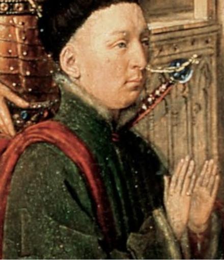 Keywords: Dresden Triptych Detail Donor.jpg Crop of Dresden Triptych showing the unknown donor Google Art Project 1437 Creator Jan van Eyck PD-old-100 PD-old-100 Dresda Tryptich by Jan van Eyck