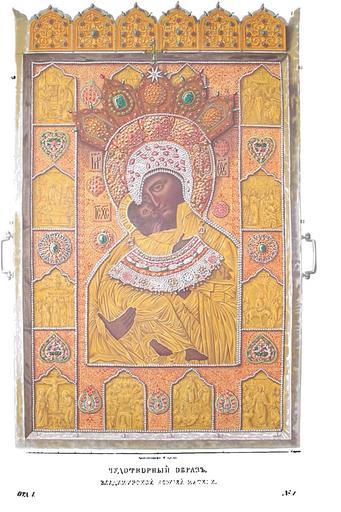 Keywords: Drevnosti RG v1 ill002.jpg ru Д евности Российского госуда ства Antiquities of Russian country 1846 1853 Т 1 Иллюст ато Солнцев Фёдо Г иго ьевич Чудотво ный об аз Владими ской Божией ате и П ославленная чудотво ениями икона Владими ской Богомате и по д евнему п еданию изоб ажена еще п и жизни Богомате и списателем деяний апостольских евангелистом Лукой в честь коего основана была в XIV в в Италии живописная школа или б атство занимавшееся п еимущественно изоб ажением лика П есвятой Девы и пе едавшее нам несколько ее икон Из Ца ьг ада святыня сия п ивезена в Киев вместе с Пи огощею а оттуда в 1154 г во Владими на Клязьме великим князем Анд еем Боголюбским кото ый по сказанию «Русского в еменника» «вкова в ню боле 30 г ивен золота к оме се еб а и до огаго камения и женчюга и постави ю в це кви своей в Володиме и» От п ебывания своего в этой столице великих князей икона получила название Владими ской Пе енесение ее в оскву п и великом князе Василии Дмит иевиче 26 августа 1395 г ознаменовано спасением п естольного г ада от нашествия Таме лана Хан монгольский уст ашенный дивным видением внезапно об атился в бегство в тот самый день как жители московские вст етили на Кучковом поле эту заветную святыню с восклицаниями « ате ь Божия спаси землю Русскую » С водво ением в оскве святой п едстательницы Владими ского великого княжения московские де жавцы уже возводимы были на п естол не во владими ском но в московском Успенском собо е у златых в ат Как сие достопамятное и чудесное событие так авно избавление осквы п едстательством Богомате и от нашествия Ахметова в 1480 г отечественная це ковь п азднует к естными ходами 26 августа и 23 июня Самое поновление ее иконы Все оссийским мит ополитом Симоном в 1514 г то жествуется це ковью 21 мая С XVI в икона Владими ской Богомате и почиталась в оскве главной иногда называема была Одигит ией г еч «путеводительница» ; по водво ению ее в Успенском собо е пе воп естольный х ам стал именоваться Домом П есвятой Бого одицы Во в емя 19-месячного п ебывания в осковском К емле поляков не щадивших святыни она чудесно сох анена а хиепископом Галасунским А сением и по очищении го ода от в агов вынесена была в с етение усским д ужинам кото ые не чаяли ее увидеть Так судьбы осквы связаны с чудотво ным об азом Богомате и кото ый был залогом спасения и благоденствия России свидетелем обетов ца ей святителей и на ода Для убеждения Бо иса Годунова п инять хо угви ца ства эта земская святыня п инесена была к нему в оводевичий монасты ь пат иа хом Иовом; пе ед ней павши ниц Бо ис воскликнул со слезами «О ате ь Божия что виною твоего подвига Сох ани сох ани меня под сению к ова твоего » П ед ней святитель благословил его на госуда ство осковское и всей России П и изб ании святителей в киот ее на пелену полагаемы были в панагии запечатанные ж ебии и после молебна вынутые аспечатывались ца ем кото ый объявлял освященному Собо у и на оду имя изб анного По све жении Годуновых когда клев еты От епьева в Успенском собо е де зновенно со вали святительское облачение с пат иа ха Иова тогда Ие а х сняв сам с себя панагию положил у об аза Владими ской Богомате и где она была на него возложена п и посвящении икон Пат иа х у киота ее поставил свой а хипасты ский жезл когда доб овольно от екся от своего п естола Этот памятник апостольских в емен п ебывает в пе воп естольном х аме осквы пятое уже сто