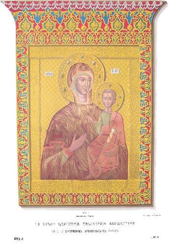 | Keywords: Drevnosti RG v1 ill004.jpg ru Д евности Российского госуда ства Antiquities of Russian country 1846 1853 Т 1 Иллюст ато Солнцев Фёдо Г иго ьевич Святая икона Одигит ии Смоленской Богомате и х анится в московском А хангельском собо е Икона Богомате и Одигит ии местная в ве хнем п иделе Благовещенского собо а в честь собо а А хист атига Гав иила; высотой она 1 а шин ши иной 13 ве шков Судя по исунку и коло иту пошиб ее московских ца ских иконописцев Умильное лицо Богомате и п одолговатее и юнее чем на д угих иконах здесь изоб аженных; на челе и на п авом плече ее две звезды т етья зак ыта Спасителем коего она де жит на уках У П едвечного ладенца одна ука благословляющая в д угой книжный свиток Поля и светы иконы обложены се еб яным басменным окладом какой уцелел на всем иконостасе от хищения неп иятелей в 1812 г Венцы на Богомате и и Спасителе чеканные се еб яные золоченые с самоцветными каменьями В описи Благовещенского собо а сделанной по указу ца я Федо а Алексеевича в 1680 г эта икона значится в числе местных главного п естола; с нее там находятся два списка один с чудесами позади левого столпа По указанию описи она была в се еб яном вызолоченном окладе с чеканными цатами с уб усом и оже ельем жемчужным; све х того ук ашена лазо евыми яхонтами су овиками и би юзами в венцах и гнездах Около об аза были написаны двадцать четы е п аздника Господских и Бого одичных Эта икона есть точный список со Смоленского чудотво ного об аза Богомате и Одигит ии кото ый по п еданию есть пе вонаписанный евангелистом Лукой В 1404 г п инесенный в оскву последним князем Смоленским Ю ием Святославичем он поставлен был в Благовещенском собо е на п авой сто оне от ца ских в ат на поклоне Че ез полвека святыня сия ходатайством епископа исаила и г аждан смоленских возв ащена была в свою отчизну Великий князь Василий Темный со святителем Ионой п овожал ее до самого До огомилова и в память сего события уч ежден 28 июля к естный ход в основанный им оводевичий монасты ь По отпуске сего об аза великий князь как гласит летопись «повеле ину в тоя место писати снем ме у с нее и об аз назнаменова» С того в емени начали асп ост аняться в осковском госуда стве списки с Одигит ии Когда ужасный пожа 1547 г ист ебил в собо ах и це квях к емлевских множество св икон тогда ве оятно не сох анился и д евнейший список с об аза Смоленской Богомате и; но судьба его подлинника связана была с судьбами осквы и Смоленска По п исоединении последнего к пе вой чудотво ная икона Одигит ии снова п инесена была а хиепископом Ва сонофием Е опкиным в столицу России для поновления в 1669 г По всей ве оятности п и этом случае сделан был описываемый нами снимок Когда Смоленск взят был аполеоном тогда заветная святыня сопутствовавшая усскому воинству снова посетила оскву об еченную в то в емя на же тву за Россию 1846 1853 http //www runiverse ru/bookreader/book403605/ page/61/mode/1up Солнцев Фёдо Г иго ьевич PD-Art Antiquities of Russian country - Volume I Files uploaded by Shakko from various sources Uploaded with UploadWizard Objects of Cathedral of the Archangel in Moscow Smolenskaya |
