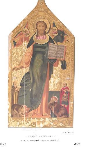 | Keywords: Drevnosti RG v1 ill015.jpg ru Д евности Российского госуда ства Antiquities of Russian country 1846 1853 Т 1 Иллюст ато Солнцев Фёдо Г иго ьевич Об аз Спасителя находится на го одской стене в Смоленске Об аз Спасителя написанный по сы ой штукату ке на го одской стене Смоленска вообще известен под именем Спаса Смоленского в честь коего по п исоединении Смоленска к осковскому госуда ству в 1667 г соо ужена в оскве у осковских во от це ковь Спаса Смоленского уп аздненная в конце XVIII столетия ам не известно тогда ли написан сей об аз когда ца и Федо Иоаннович и Бо ис Годунов пост оили каменные стены Смоленска вместо земляных валов или когда ца ь Алексей ихайлович завоевал это оже елье России В числе во от к епости находились и Фло овские названные без сомнения в под ажание соименным в осковском К емле кои в 1658 г по ца скому указу пе еименованы в Спасские Как на осковских Спасских во отах так и на стене Смоленска одинаково изоб ажение Спасителя к оме того что на последнем к п ипадшим в молении святым Се гию и Ва лааму п исоединены п едстоящие два святых один в монашеской одежде а д угой в воинских доспехах с к естом в уке В надписях имена их изгладились о ве оятно это особенно чтимые смолянами отечественные их святые п еподобный Ав амий и мученик е ку ий Фигу а Спасителя более восьми голов; на лице его художник не без успеха ста ался вы азить спокойное величие и святолепность; одна ука благословляющая а д угая де жащая аск ытое Евангелие Доличное замечательно своей отделкой; хитон к асноватого цвета а зеленая иматисма обвивая тело Спасителя одним концом лежит на уке его а д угим спущена долу Вообще исунок тве д и отчетлив а аск аска отличается легкостью и плавкостью естами об аз подновлен 1846 1853 http //www runiverse ru/bookreader/book403605/ page/61/mode/1up Солнцев Фёдо Г иго ьевич PD-Art Antiquities of Russian country - Volume I Files uploaded by Shakko from various sources Uploaded with UploadWizard Spas Smolensky Icons of Smolensk |