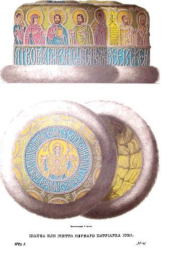 Keywords: Drevnosti RG v1 ill086.jpg ru Д евности Российского госуда ства Antiquities of Russian country 1846 1853 Т 1 Иллюст ато Солнцев Фёдо Г иго ьевич В московской Пат иа шей изнице мит ы пе вого и шестого пат иа хов Все оссийских Иова и икона напоминая нам лица замечательные в исто ии ие а хии и госуда ства и отчасти сходные своим ж ебием в то же в емя об ащают внимание на п оисхождение пе воначальное знаменование и введение сего главного ие а хического отличия ит а есть слово г еческое означающее головную повязку увясло наглавие кида Так как она составляла отличительное ук ашение вообще иудейских пе восвященников а со в емени Давида и ца ей то в под ажание пе вым а хипасты и х истианской це кви усвоили себе подобное наглавие У пе восвященников на златой дщице ук ашавшей чело кида а изоб ажены были слова святыня Господня замененные на мит е а хие ейской ликами Спасителя Богомате и и д угих святых В век Иисуса Х иста по свидетельству Иосифа Флавия ж ецы из племени маккавеев бывшие вместе и ца ями к мит е п исоединили т ойную ко ону Итак по пе воначальному п оисхождению мит а составляла главную утва ь ца ей и пе восвященников как символ помазания и власти Це ковь х истианская не едко об ащающая внешнее вещественное в символы духовного сообщила мит е высокое значение славы Господа и власти данной от него служителям святилища посему-то Евсевий называет ее венцем славы Вселенский святитель Иоанн Златоуст в похвале Евангелию внушает укополагаемому епископу что «п инятие венца знаменует Евангелие что хотя он всем глава и над всеми имеет де жаву но и сам состоит под законом» Пе вое упот ебление мит святительских вст ечается нам в пе венствующей це кви По свидетельству Епифания и Евсевия апостолы св Иаков б ат Господень и евангелист Иоанн Богослов в знак духовного помазания носили на своем наглавии дщицу злату Это подтве ждается Деяниями Константинопольского Собо а в IX в п отив Фотия где между п очим сказано что пат иа х Ие усалимский Феодосий послал в да к Ца ьг адскому пат иа ху Игнатию с поди ом и на амником мит у св Иакова б ата Господня Этот же самый Феодосий утве ждает что п едместники его пат иа хи и он сам возлагали себе на главу мит у когда им надлежало входить в святилище для богослужения По п име у св апостолов и вселенские святители ук ашались кида ом; ибо св Г иго ий азиансин называет кида ом то наглавие или увясло кото ое он носил; вп очем он не изъяснил нам какую оно имело фигу у и упот еблялось ли п очими епископами В наших отечественных летописях упомянуто о шапке Иоанна Златоуста п ивезенной в оскву в 1558 г Ю ьевским а химанд итом8 До азделения це кви на Восточную и Западную и впоследствии известно было в имско-католической ие а хии упот ебление мит кои до Лионского Собо а в 1249 г служили отличием для ка диналов Во в емена же пат иа ха Вальсамона в XII в как он сам свидетельствует один только пат иа х Александ ийский надевал на себя мит у в служении П ичиной сему он полагает то что когда св Ки илл пат иа х Александ ийский п едседательствовал на III Вселенском Собо е за Целестина имского пат иа ха тогда возложил на главу свою золотую мит у какую носили имские пат иа хи по п аву данному св Сильвест у Константином Великим о видно что постоянное упот ебление мит ы в то в емя еще не было узаконено ибо по словам Вальсамона незадолго до него даже один ха тофилакс Константинопольск