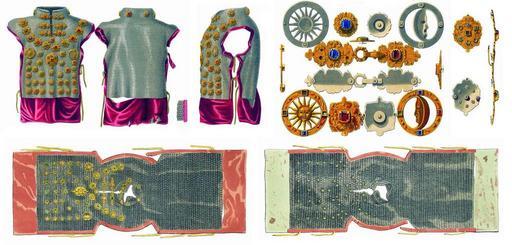 | Keywords: Drevnosti RG v3 ill058-60 - Silver Chainmail Imeretin.jpg ru Се еб янная колчюга 16 янва я 1659 пода ена послами Име етинского ца я Александ а «Панцы ь се еб ен а по осмот у медной посе еб ен плащи медные золочены с каменьи достоканы да виниски; около опушка ба хатом че вчатым; подложен миткалями; цена двадцать ублев» en Silver chainmail from Imeretin king Alexandr Georgia Д евности Российского госуда ства < 1853 Солнцев Фёдо Г иго ьевич Author died more than 70 years ago - public domain PD-old Antiquities of Russian country - Volume III Mail armour Parade armour |