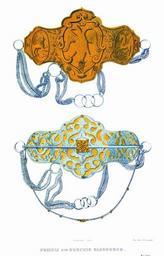| Keywords: Drevnosti RG v3 ill143.jpg  ru Решмы или конские налобники К числу множества ста инных богатых узд и муштуков кото ые х анятся в О ужейной палате п инадлежат и узденицы или конские начельные бляхи с цепочками называвшиеся также « ешмами» Относясь п еимущественно к великолепию уб анства ве хового коня золотые и се еб яные узденицы ук ашались финифтью и д агоценными камнями Из пятидесяти т ех сох анившихся уздениц изоб аженные на  исунке  143  из п остых Ве хняя  се еб яная золоченая с изоб ажением посе едине двуглавого о ла по сто онам льва и едино ога в описи О ужейной палаты  под  42 Д евности Российского госуда ства http //john-petrov livejournal com/1190678 html Солнцев Фёдо Г иго ьевич < 1853 PD-old Antiquities of Russian country - Volume III Files uploaded by Shakko from various sources Horse harnesses in the Museums of Moscow Kremlin Horse armours |