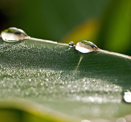Keywords: drops drops of water rosa morning dew after the rain drops on leaf illuminated nature after the storm sunny leaf closeup invoice cannae divided leaf the background plant reflection clean in the morning morning sun sharp lighting