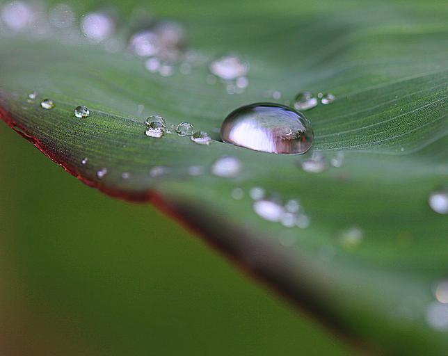 Keywords: drops drops of water water rain drops nature after the rain invoice macro wet rosa spherical leaf cannae divided leaf reflections reflection gloss summer substrate shadows leaf texture the surface of the leaf droplets