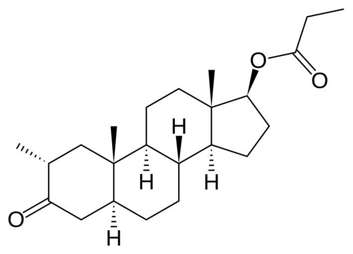 | Keywords: Drostanolone propionate.svg Skeletal formula of drostanolone propionate Created using http //www acdlabs com/download/chemsk html ACD/ChemSketch 10 0 and Inkscape Own 2007-07-12 Fvasconcellos 19 05 12 July 2007 UTC Anabolic-androgenic steroids Propionate esters |