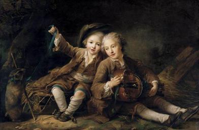 | Keywords: Drouais, François-Hubert - The Children of the Duc de Bouillon - 1756.jpg Artwork Creator François-Hubert Drouais The Children of the Duc de Bouillon Dressed as Montagnards 1756 Oil on canvas size cm 86 130 Unidentified private collection object history credit line Signed lower center Drouais le fils 1756 Jacques Leopold Charles Godefroy 1746-1802 Prince de Bouillon is shown playing a hurdy-gurdy; Charles Louis Godefroy 1749-1767 Prince d'Auvergne is shown playing with a marmot on a ribbon accession number WGA link 6693 http //www wga hu/art/d/drouais/francois/children jpg http //www wga hu/html/d/drouais/francois/children html painting genre French 1701-1750 PD-old-100 WGA form painting WGA type genre WGA School French WGA time period 1701-1750 Portrait paintings by François-Hubert Drouais 18th-century portrait paintings in unidentified private collections 1756 House of La Tour d'Auvergne Dukes of Bouillon 1746 births La Tour d'Auvergne Jacques Leopold Charles Godefroy de 1749 births La Tour d'Auvergne Charles Louis Godefroi de 1756 oil on canvas paintings Portrait 1756 portrait paintings from France Male 1767 deaths La Tour d'Auvergne Charles Louis Godefroi de 1802 deaths La Tour d'Auvergne Jacques Leopold Charles Godefroy de 18th-century oil portraits of boys at full length 1756 18th-century people of France 1756 18th-century portrait paintings with animals 1756 Boys looking at viewer in art Brown clothing in art male 1756 Boys with hats in art 1756 Hurdy-gurdy Male shoes in portrait paintings 1756 Marmots in art Paintings of boys sitting on the ground outdoors Pastoral portraits Portrait paintings of sitting boys 1756 Portraits with musical instruments 1756 Portrait paintings of children with animals 1756 Portraits of brothers 1756 Portraits with 2 persons 1756 Powdered hair in art 1756 Rococo portrait paintings of boys 1756 Velvet clothing in art 1756 Uploads by Mattes from external sources ImageNote 1 368 156 266 459 1223 800 2 Charles Louis Godefroi de La Tour d'Auvergne Prince of Auvergne 1749 “1767 ImageNoteEnd 1 ImageNote 2 657 208 272 497 1223 800 2 Jacques Léopold de La Tour d'Auvergne last Duke of Bouillon ImageNoteEnd 2 |