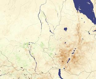 Keywords: Drought in Ethiopia, Natural Hazards DVIDS833583.jpg en After a record harvest in October 2007 Ethiopia settled into a drought Little rain fell during the October and November rainy season and rainfall was predicted to be below normal in the March-to-May rainy season as well said the Famine Early Warning System Network <p>The impact of the poor rainfall is evident in this vegetation image made with data collected by the Moderate Resolution Imaging Spectroradiometer modis gsfc nasa gov MODIS on NASA's terra nasa gov/ Terra satellite between March 5 and March 20 2008 Areas where vegetation was less healthy or more sparse than average are brown average growth is cream-colored and better-than-average growth is green An arc of brown stretches across central Ethiopia roughly following the chain of lakes that line the Great Rift Valley </p> <p> Ethiopia's economy is dominated by agriculture; eighty percent of total employment in the country of about 76 5 million people is in agriculture Food security and famine are recurring problems In parts of southern Ethiopia the present drought has extended through three rainy seasons In these areas the poor rainfall could lead to widespread extreme food insecurity the Famine Early Warning System Network warned In early March the United Nations requested four million dollars to provide aid to more than one million people in Ethiopia reported Reuters </p> <ul><li>Famine Early Warning System Network 2008 http //www fews net/pages/country aspx gb et l en Ethiopia U S Agency for International Development Accessed April 4 2008 </li> <li>Reuters 2008 March 5 africa reuters com/top/news/usnBAN551308 html UN calls for million to fight Ethiopia drought Accessed April 4 2008 </li> <li>U S Central Intelligence Agency 2008 https //www cia gov/library/publications/the-world-factbook/geos/et html Ethiopia <cite>The World Factbook </cite> Accessed April 7 2008 </li> </ul><p>NASA image created by Jesse Allen Earth Observatory using data provided by Inbal Reshef www pecad fas usda gov/glam cfm Global Agricultural Monitoring Project Caption by Holli Riebeek </p> NASA Identifier ethiopiandvia_tmo_2008065 <br>Unit NASA 2011-08-03 Glenn Research Center https //www dvidshub net/image/833583/drought-ethiopia-natural-hazards 833583 2013-02-08 03 12 WASHINGTON D C US PD-USGov United States Agency for International Development Images from DoD uploaded by Fæ