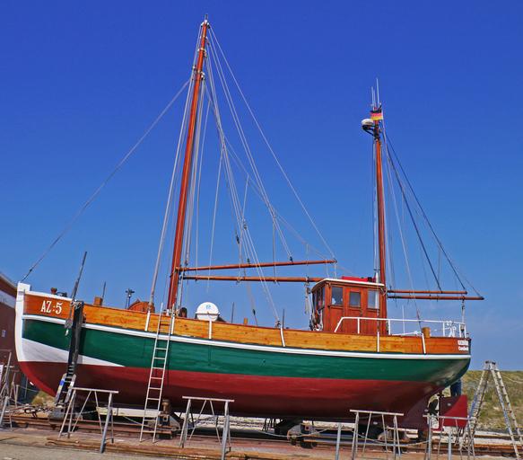 Keywords: dry dock cutter repair paint revision seemed slipway sielhafen neuharlingersiel shrimp masts boom ladders fishing port east frisia coast wadden sea north sea coast north sea lower saxony coastal region