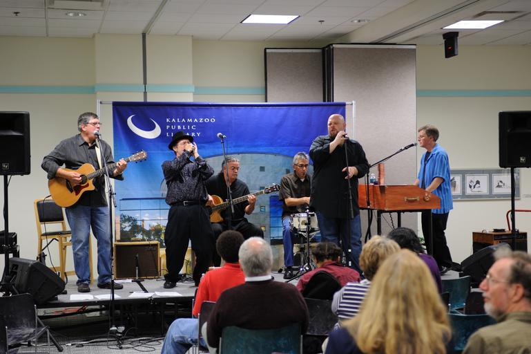 Keywords: The Blue Moon Blues Band played an intimate unplugged performance on Wednesday, October 21st, 2009, at Central Library, as part of KPLs ongoing Live Music series. music concert michigan blues kalamazoo