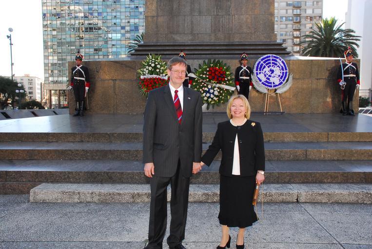 Keywords: ambassador nelson credentials artigas protocol Following the presentation of his credentials to Uruguay President Tabare Vazquez, Ambassador David D. Nelson laid a wreath in honor of Uruguay's founding father, General Jose Artigas, at his monument located in Montevideo's Plaza Independencia. [U.S. Embassy photo by Vince Alongi / Copyright info] Following the presentation of his credentials to Uruguay President Tabare Vazquez, Ambassador David D. Nelson laid a wreath in honor of Uruguay's founding father, General Jose Artigas, at his monument located in Montevideo's Plaza Independencia. [U.S. Embassy photo by Vince Alongi / Copyright info]