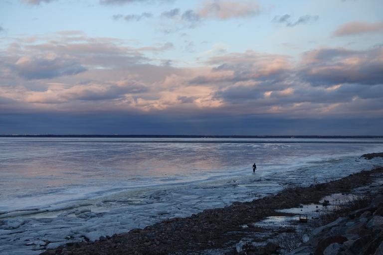 Keywords: кронштадт sea sky clouds sunset man walking reflection shore landscape outdoor coast seaside water ocean beach lake