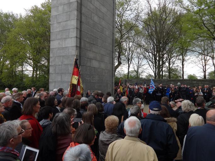 Keywords: neuengamme concentrationcamp kz hamburg jahrestag anniversary gedenken kranzniederlegung crowd people outdoor