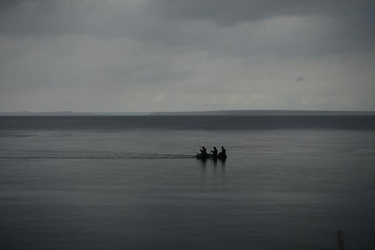 Keywords: lake sky gray could_be_bw_and_you_wont_notice couldbebwandyouwontnotice boat fishermen fishing outdoor