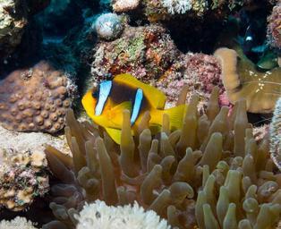 MAKE A MEME View Large Image marsa shagra underwater diving rx100 ikelite sea and sea seaandsea clownfish murena ys-d1 ysd1 animal water coral reef Bohóchal tisztító rákjával az oldalán. Bohóchal tisztító rákjával az oldalán.