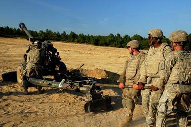 Keywords: usarmy field artillery fieldartillery 82nd airborne division 82ndairbornedivision m119a3 howitzer airborne soldier fort bragg fortbragg army divarty 13b artillery people outdoor An M119A3 crew, assigned to 3rd Battalion, 319th Airborne Field Artillery Regiment, shift the trails of the over 4,000-pound Howitzer to conduct an out of sector fire mission during the first Battalion Artillery Readiness Test in more than a decade. The BART, conducted from 27 to 30 July on Fort Bragg, North Carolina, validated the Gun Devils’ ability to coordinate complex fire missions before assuming the Global Response Force in December. (Capt. Joe Bush, 82nd Airborne DIVARTY/ Released.) An M119A3 crew, assigned to 3rd Battalion, 319th Airborne Field Artillery Regiment, shift the trails of the over 4,000-pound Howitzer to conduct an out of sector fire mission during the first Battalion Artillery Readiness Test in more than a decade. The BART, conducted from 27 to 30 July on Fort Bragg, North Carolina, validated the Gun Devils’ ability to coordinate complex fire missions before assuming the Global Response Force in December. (Capt. Joe Bush, 82nd Airborne DIVARTY/ Released.) |