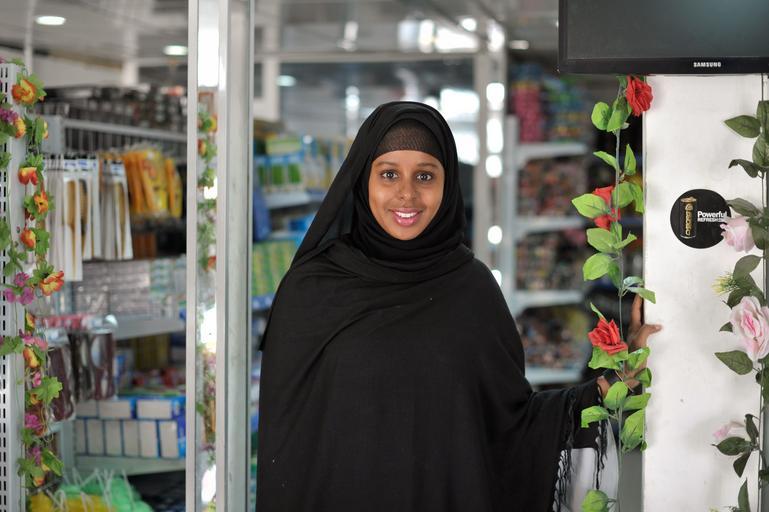Keywords: people Nasra Agil, owner of Mogadishu's first dollar store, stands among her products in the Somali capital on January 20. AU UN IST PHOTO / Tobin Jones Nasra Agil, owner of Mogadishu's first dollar store, stands among her products in the Somali capital on January 20. AU UN IST PHOTO / Tobin Jones