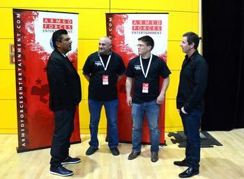 | Keywords: indoor ANSBACH, Germany (May 20, 2015) -- Comedians George Lopez and Bryan Kellen visited U.S. Army Garrison Ansbach for a stand-up comedy show Tuesday at the Katterbach Fitness Center. The show, presented by Armed Forces Entertainment and titled “George Lopez: Grunt by Association,” played to an audience of approximately 1,500 USAG Ansbach community members. Before the show, Lopez and Kellen toured a hangar and the flightline of Katterbach Army Airfield with Soldiers of the 12th Combat Aviation Brigade. After the show, Lopez and Kellen stayed to take photos with fans of the show. (U.S. Army photo by Stephen Baack, USAG Ansbach Public Affairs) ANSBACH, Germany (May 20, 2015) -- Comedians George Lopez and Bryan Kellen visited U.S. Army Garrison Ansbach for a stand-up comedy show Tuesday at the Katterbach Fitness Center. The show, presented by Armed Forces Entertainment and titled “George Lopez: Grunt by Association,” played to an audience of approximately 1,500 USAG Ansbach community members. Before the show, Lopez and Kellen toured a hangar and the flightline of Katterbach Army Airfield with Soldiers of the 12th Combat Aviation Brigade. After the show, Lopez and Kellen stayed to take photos with fans of the show. (U.S. Army photo by Stephen Baack, USAG Ansbach Public Affairs) |