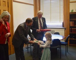 | Keywords: indoor Luca Mestemaker presents Senator Randy Baumgardner with a plaque recognizing his continued support for the Make a Wish Foundation. Luca Mestemaker presents Senator Randy Baumgardner with a plaque recognizing his continued support for the Make a Wish Foundation. |