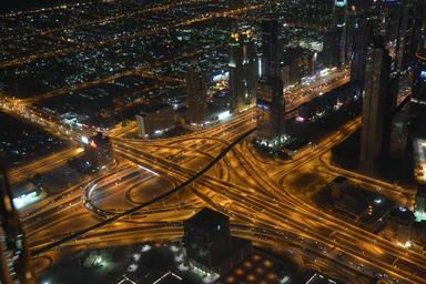 Keywords: dubai traffic uae vehicles skyscraper u a e autos illuminated burji kalifa night night photograph yellow city