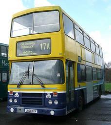 Keywords: Dublin bus RH139.JPG Dublin Bus RH-class Alexander Belfast bodied Leyland Olympian double-decker pictured at the 2008 Cobham bus rally in the UK It was new to Dublin Bus as their dual-door fleet no RH139 reg 92 D 139 Having been withdrawn in October 2006 and exported to w Ensignbus it's pictured here still in Dublin Bus livery and re-registered with UK plate J908 CEV having had its centre door removed It's since found its way to Cheltenham based coach operator Swanbrook who are operating it in a green white purple livery applied in a style reminiscent of the Dublin Bus blue white orange livery which preceded this blue and yellow version Own 2008-04-06 Arriva436 Images by Arriva436 2008 Cobham bus rally Private buses in the United Kingdom Dublin Bus RH/RA/RV class in the United Kingdom 139 J prefix registered buses in the United Kingdom J908 CEV |