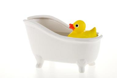 Keywords: duck bath water floats toy rubber yellow springy fun studio white background