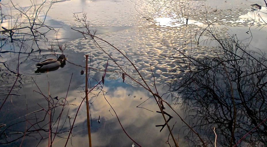 Keywords: duck bird water mirroring winter nature reflection stockholm animals ducks lake sunset evening