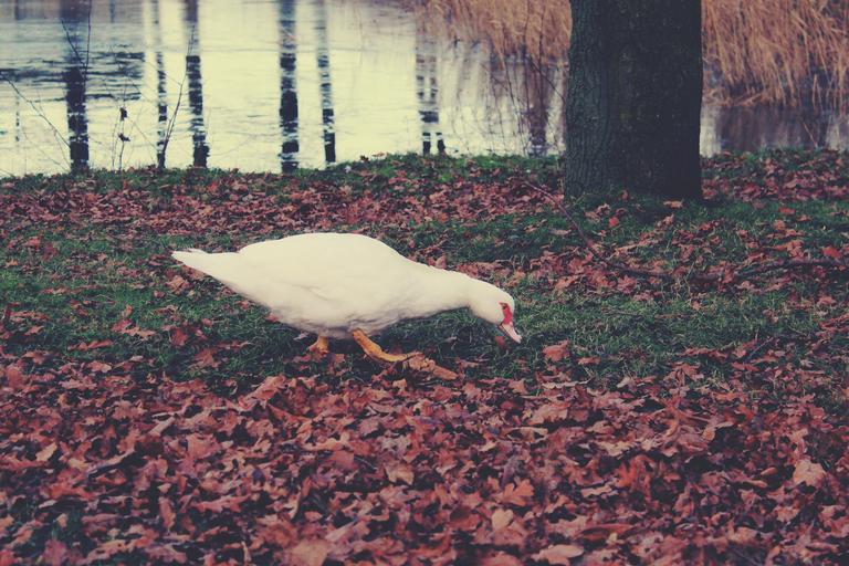 Keywords: duck foraging water pond cold garden nature leaves water reflection meadow