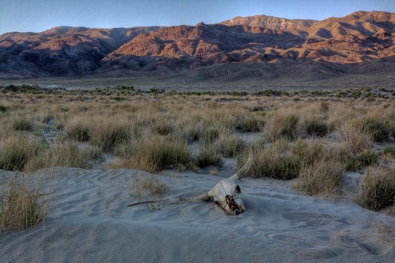 Keywords: dunes skull desert arid dead dry sand animal head horns landscape heat bone extreme hot skeleton drought journey summer valley