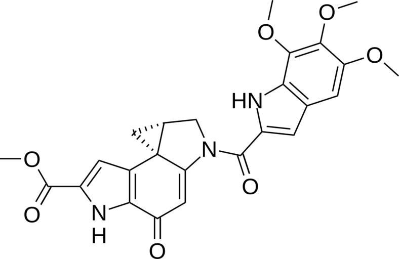Keywords: Duocarmycin SA.svg Chemical structure of duocarmycin SA Own 18 35 30 September 2011 UTC Ed Edgar181 Duocarmycins
